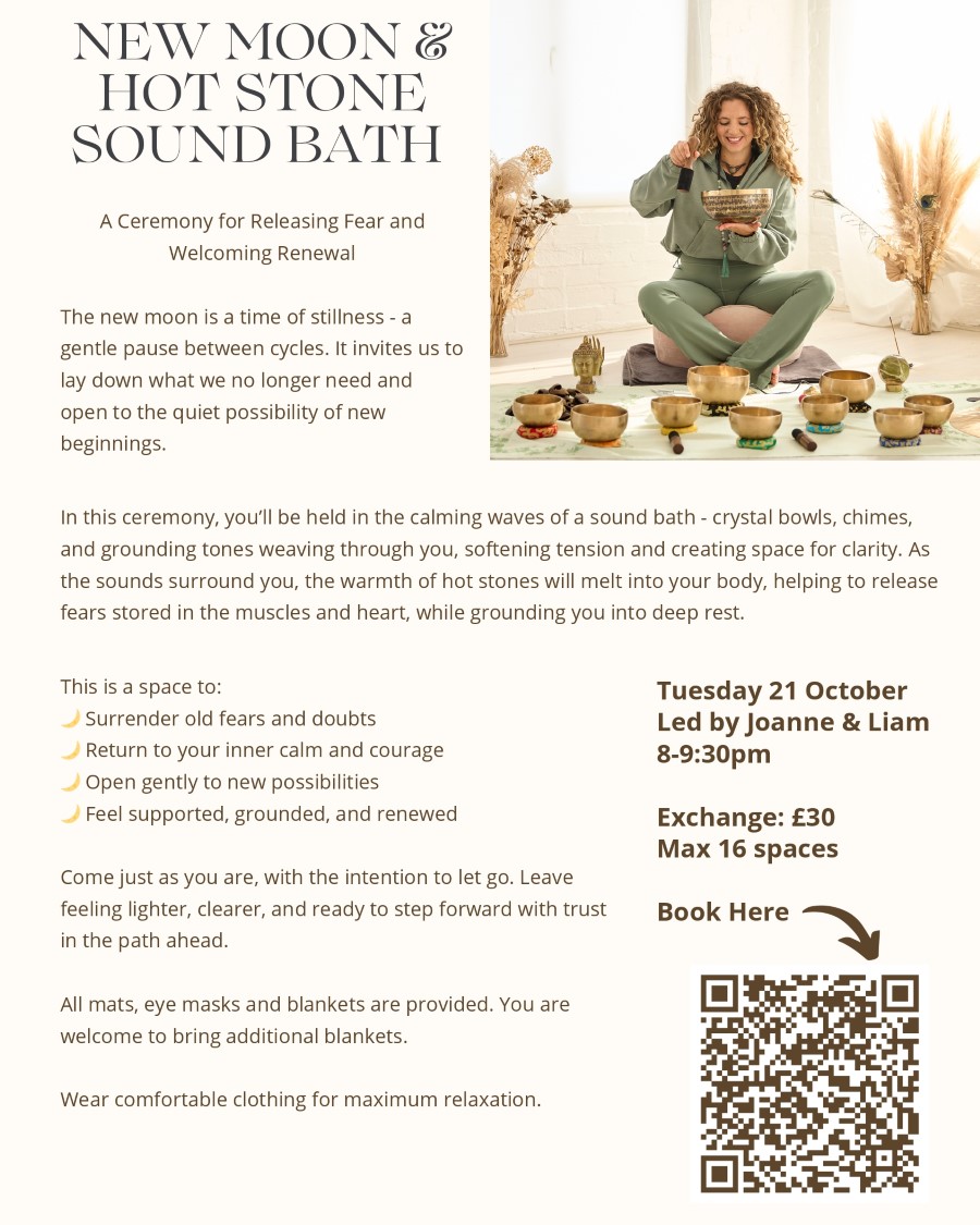 • Please arrive promptly at 8pm to allow plenty of time to settle in. The Sound Bath will start with you being welcomed to a warm, candle lit studio with calming essential oils.